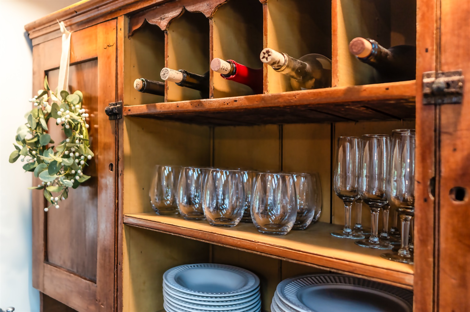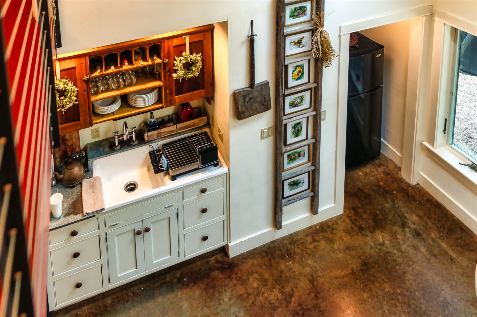The kitchenette has cooking basics, including an induction burner, air fryer/toaster oven, microwave, toaster, dishwasher, full-size refrigerator, beverage fridge, dishware/flatware, slow cooker, and outdoor gas BBQ Grill with side burner. PLEASE NOTE: The house offers a kitchenette, not a full kitchen. There is no oven or full stove but there is a full-sized refrigerator. Please enjoy the numerous restaurants in town!